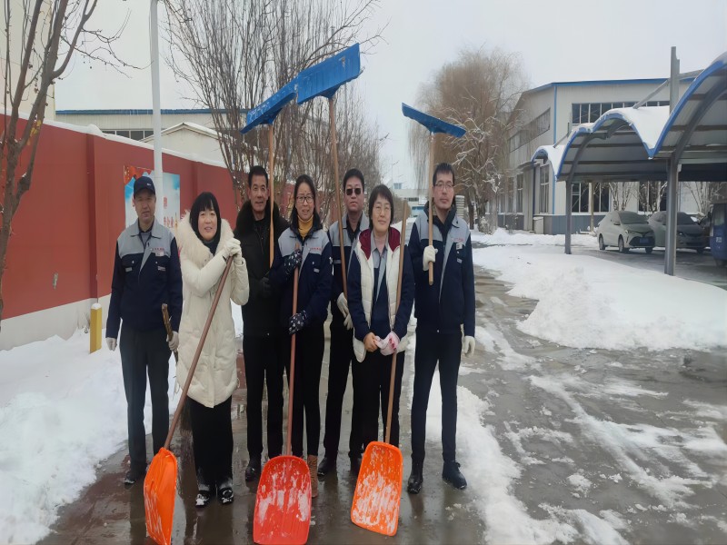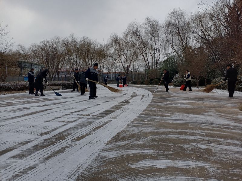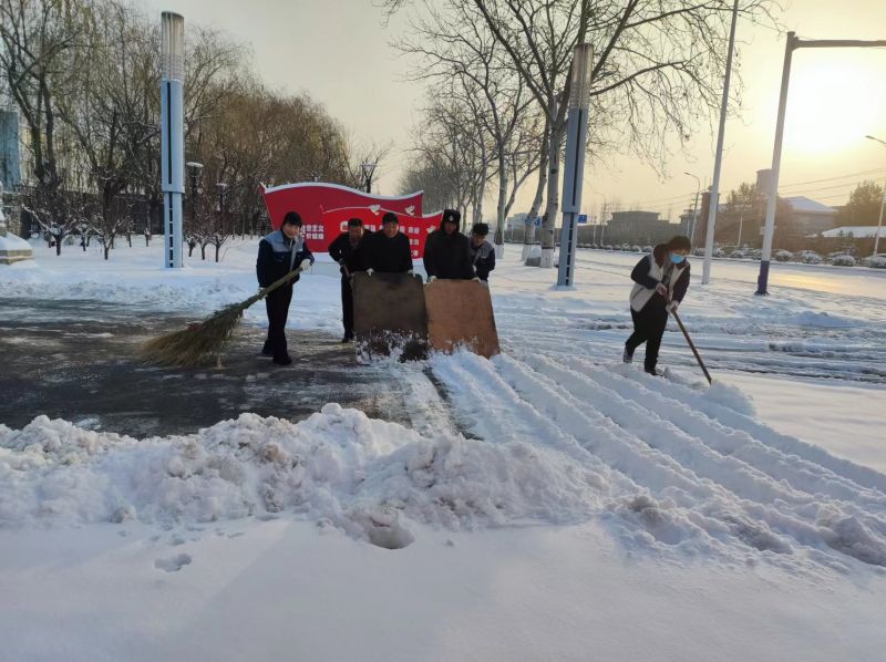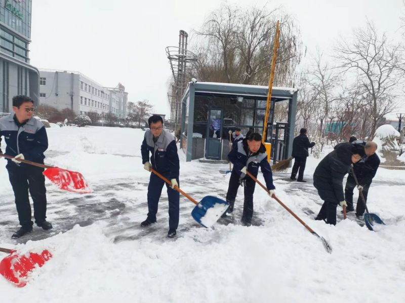 14日晚間,滄州市區(qū)降雪趨勢加大,公司路面出現(xiàn)嚴(yán)重積雪,為了防止積雪踩實(shí)后不易清掃,公司黨員干部迅速行動,大家按照先重點(diǎn)后一般的順序,把主要道路、公司門前等區(qū)域清理干凈,保障道路暢通,方便員工通行。在寒冷的環(huán)境中,大家團(tuán)結(jié)協(xié)作,不畏嚴(yán)寒,有序的清理著道路的積雪,有的拿著除雪鏟清理路上積雪,有的用掃帚掃去余雪,忙得不亦樂乎。雖然天氣寒冷,但是大家都干得熱火朝天。經(jīng)過共同努力,路面清掃完畢,看著清理干凈的路面大家露出燦爛的微笑。