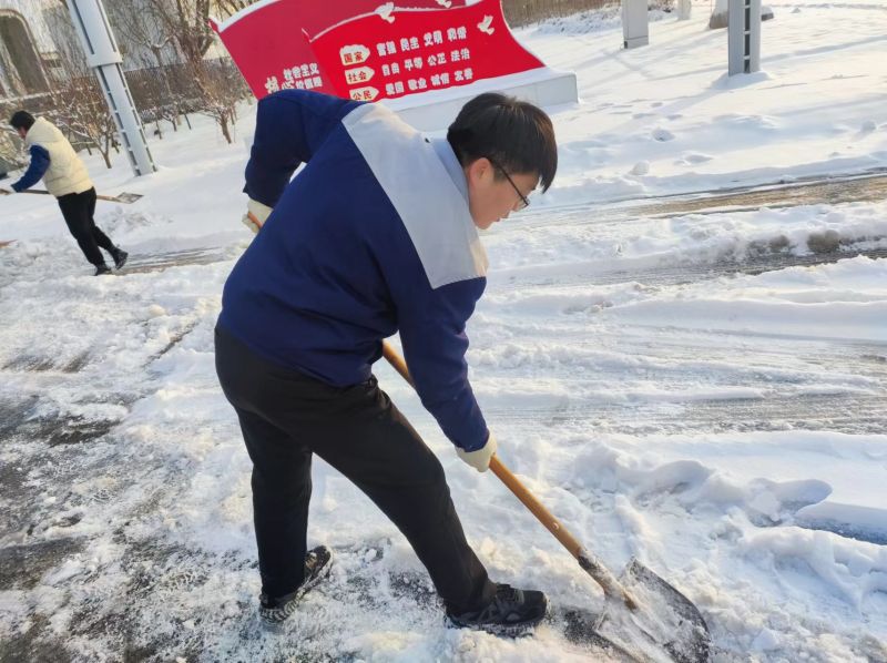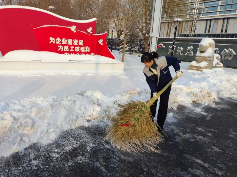 員工們鏟冰掃雪的身影為銀裝素裹的冬日帶來了不一樣溫暖!